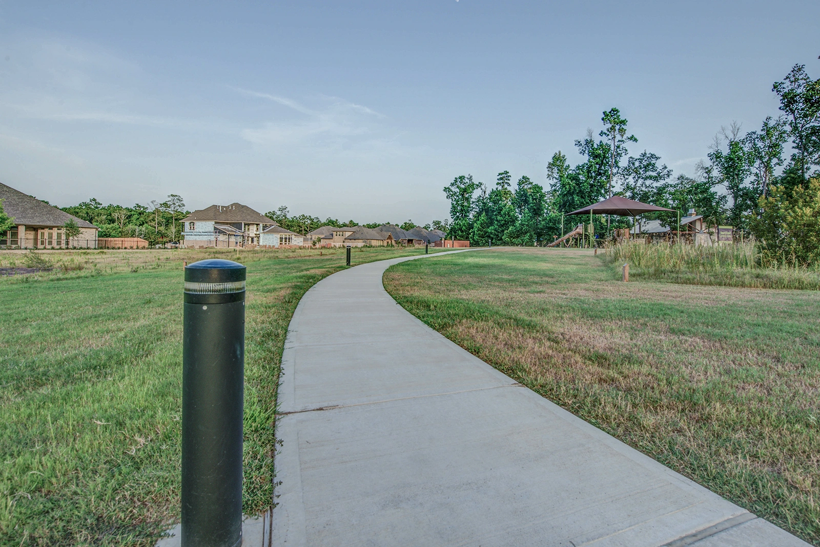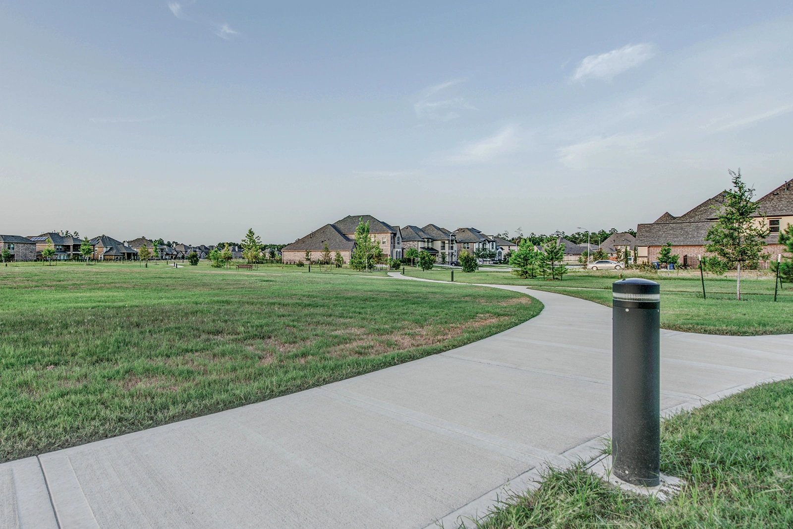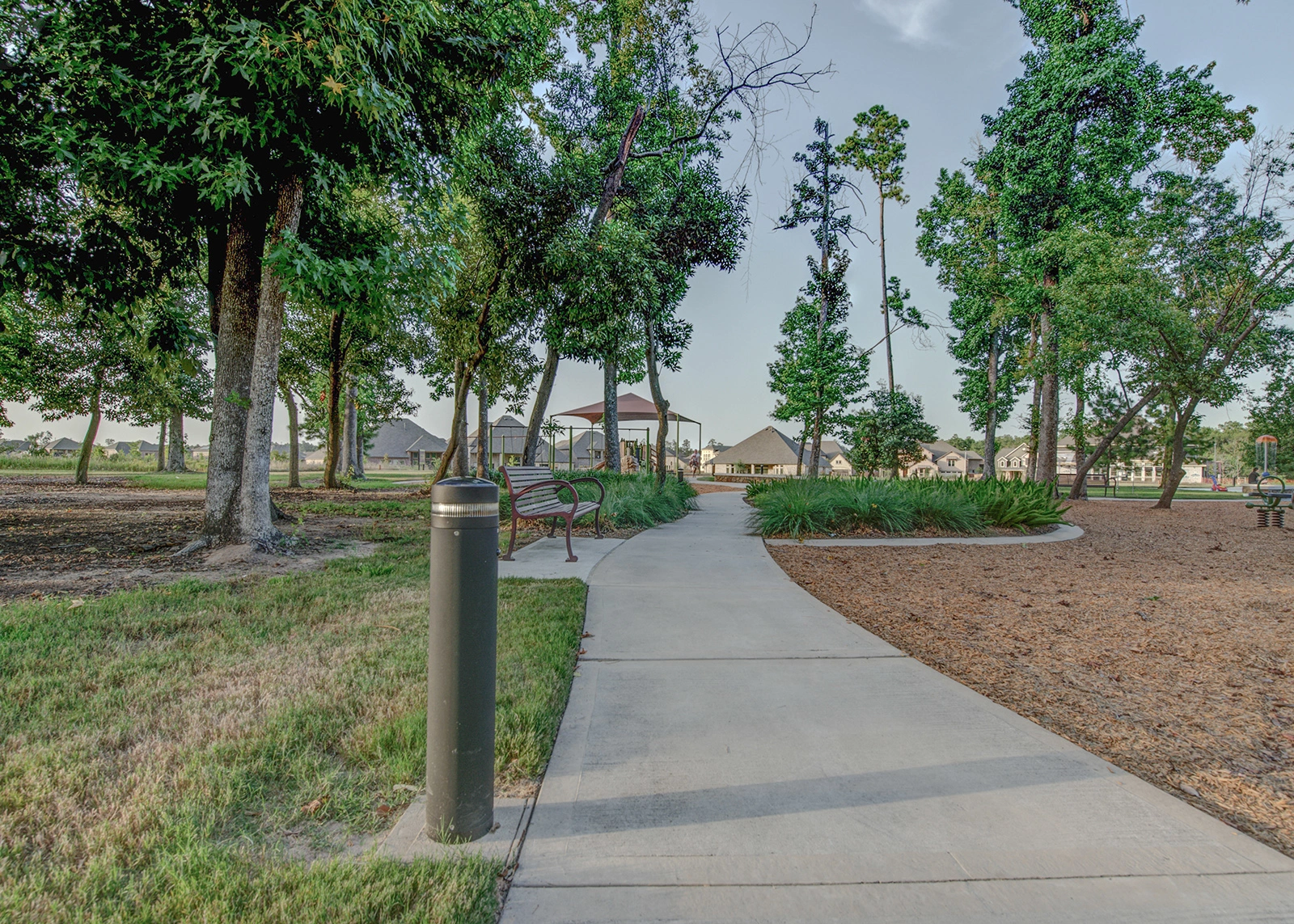 At Harmony Linear Park, Exteria's SP‑010 Solar LED Bollards guide visitors along meandering pathways while preserving the park's natural serenity. The fixtures blend perfectly with the landscape, their subtle design complementing greenery, water features, and open spaces rather than overpowering them.